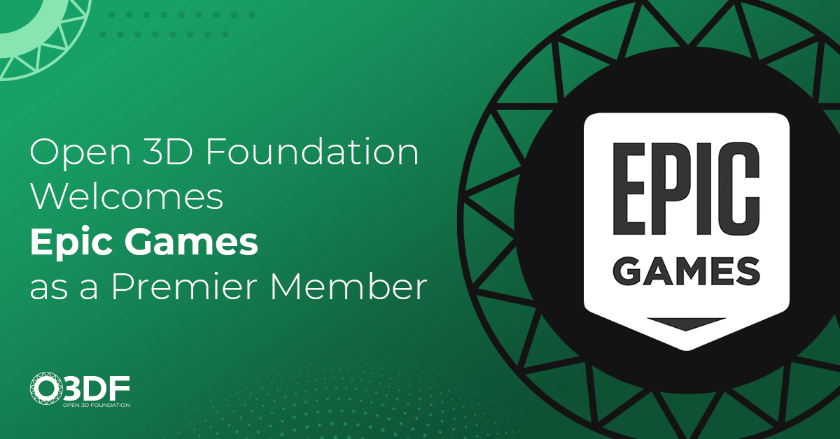The Open 3D Foundation (O3DF) is proud to announce Epic Games as a Premier member alongside Adobe, Amazon Web Services (AWS), Huawei, Intel, LightSpeed Studios, Microsoft and Niantic, as it celebrates its first birthday.