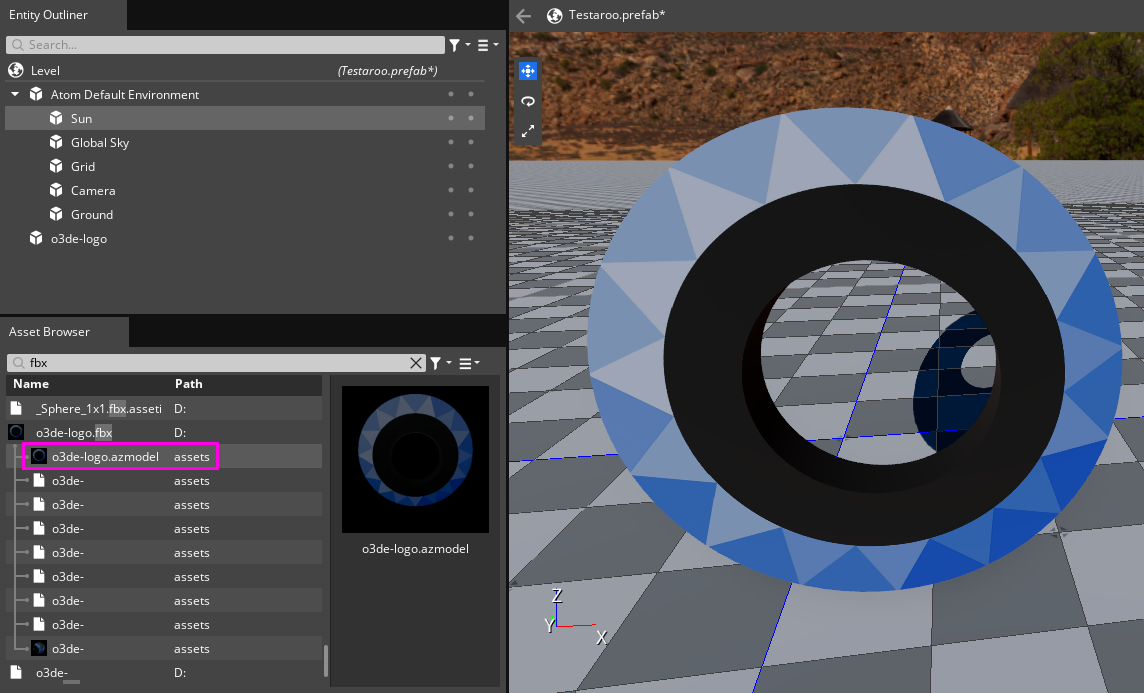 fbxinto the search field at the top of Asset Browser and use one of the.fbxfiles included with O3DE.