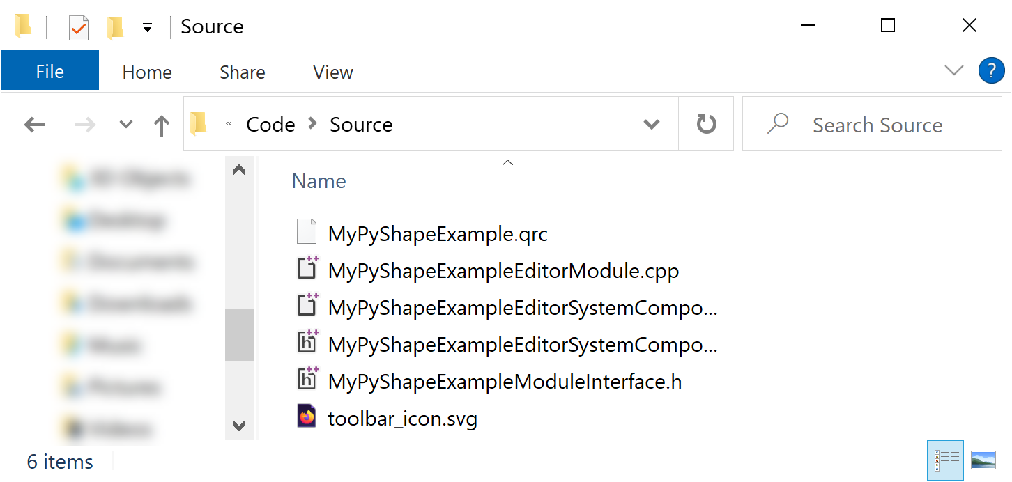 Code\Sourcedirectory to use as your icon. In this example, the icon is namedtoolbar.svg. We recommend that your icon adheres to the guidelines in UI development best practices .Add your icon to MyPyShapeExample Gem’s resources by updating