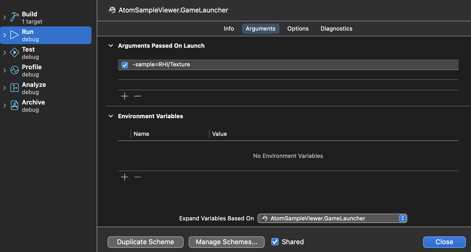 Manual export O3DE Atom Sampleviewer for iOS